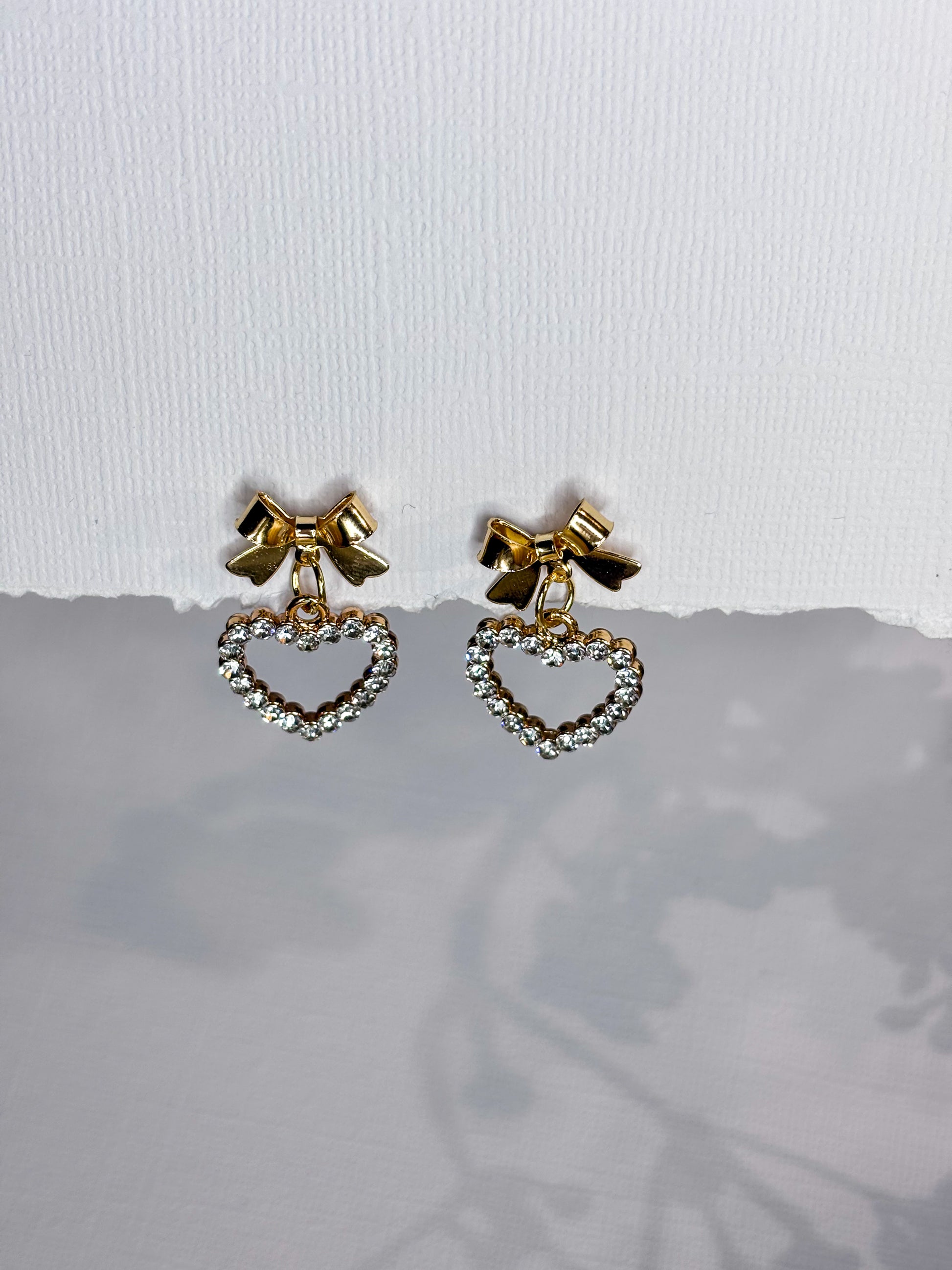 Bow studs with drop heart